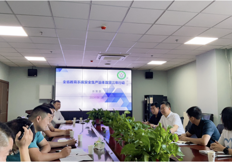 6月28日上午,校党委书记刘岭对体育部安全生产治本攻坚三年行动专项工作进行全面检查和指导。